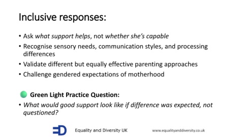 • What would good support look like if difference was expected, not